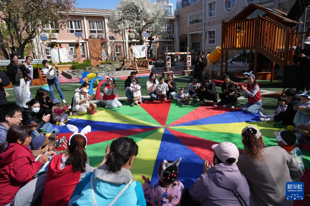 4月1日,北京市第五幼儿园举行0至3岁亲子托育活动。