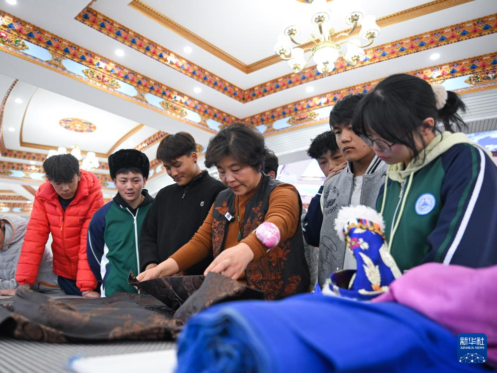 3月30日,在青海省海北藏族自治州职业技术学校,山东援青教师王兆红(左四)在指导学生实操。