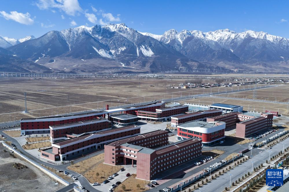 这是位于青海省海北藏族自治州门源回族自治县的浩门镇高级中学,由山东省和中粮集团援建(3月31日摄,无人机照片)。