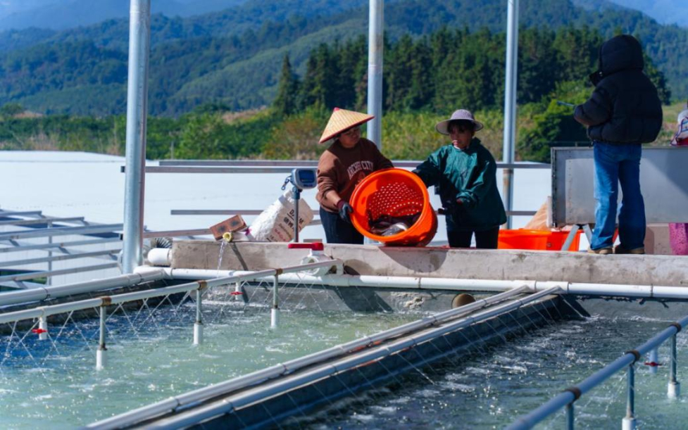 “基地采用陆基圆池循环水养殖模式,将鲈鱼养在岸上的圆桶里,既能实现高密度规模化养殖,还能通过尾水净化实现水资源循环利用。”基地负责人朱立章说,这里的鲈鱼通过冷链物流销往粤港澳大湾区等地,深受市场青睐,目前供不应求,未来基地将扩大养殖规模带动更多村民增收。