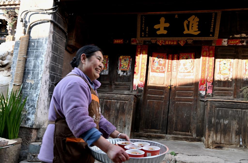 2026年3月24日,当地特色凉粉店员工给客人送去特色凉粉。