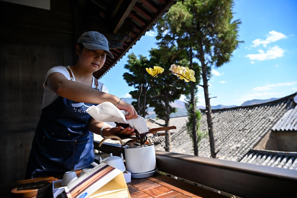 2026年3月24日,游客在白雾村读白书院(由楚黔会馆改造)喝咖啡。