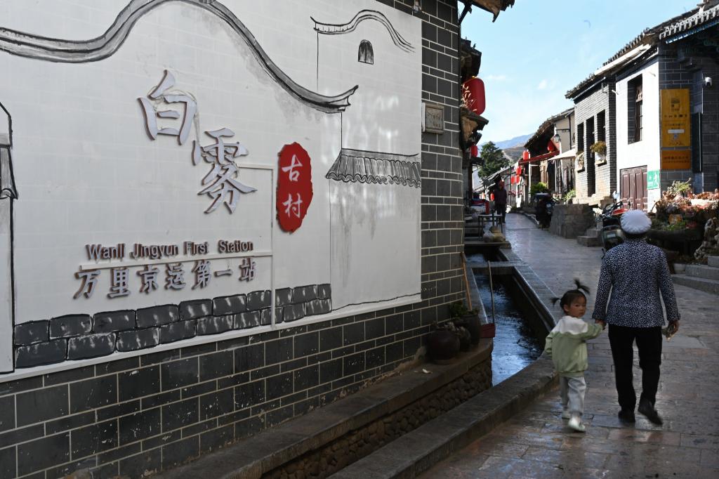 2026年3月24日,村民行走在白雾村的青石古桥“得胜桥”上。