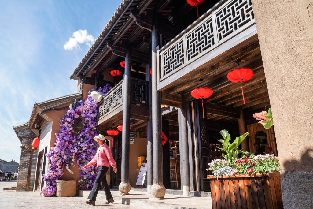 2026年3月24日,游客从白雾村一家民宿内走出。