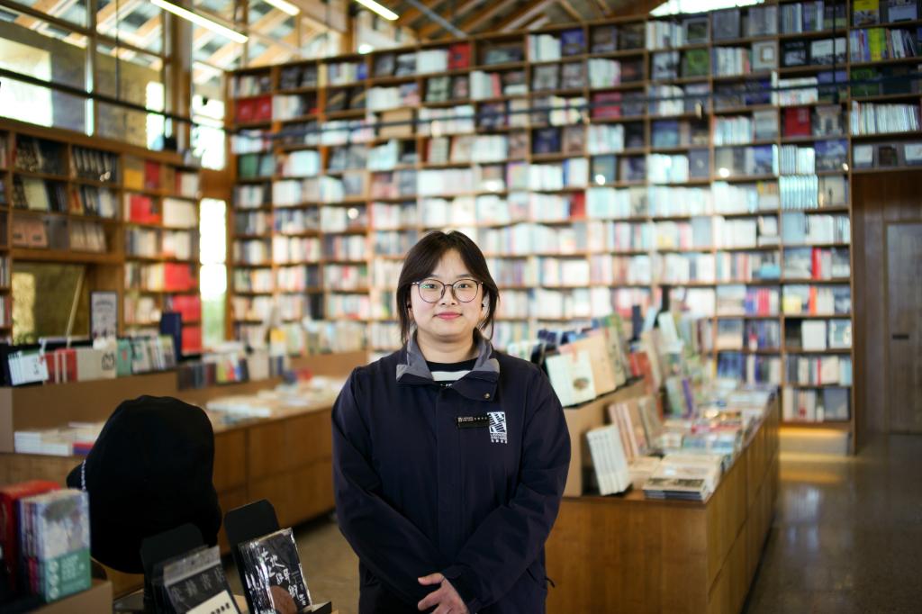 2026年3月24日拍摄的先锋会泽白雾书局店长高煜敏。32岁的高煜敏来自曲靖市,和4位年轻员工一起负责书店运营。她自2025年5月书店开业以来就一直在白雾村工作、生活。