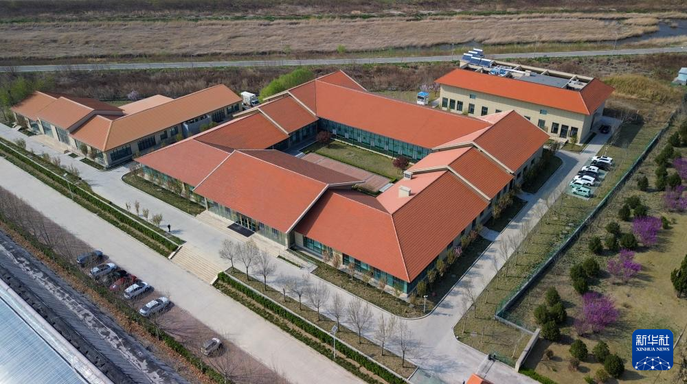 4月1日拍摄的寿光蔬菜种质资源库(无人机照片)。