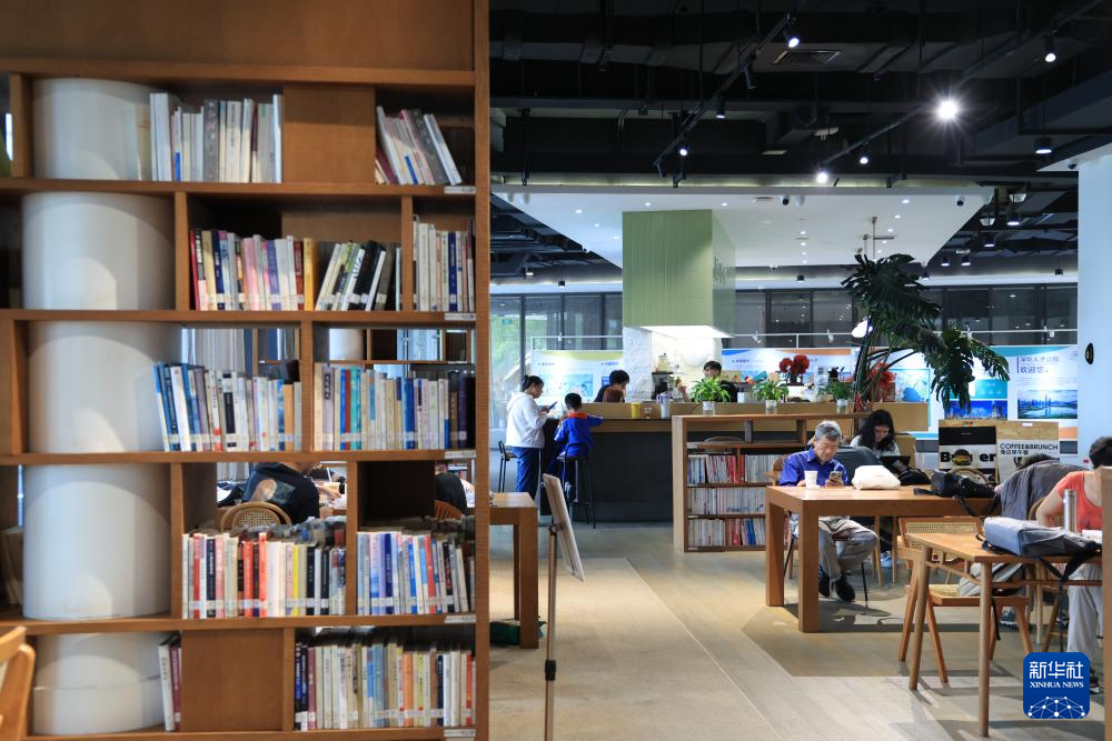 4月1日,游客在深圳人才公园的书吧内阅读和享用餐饮。
