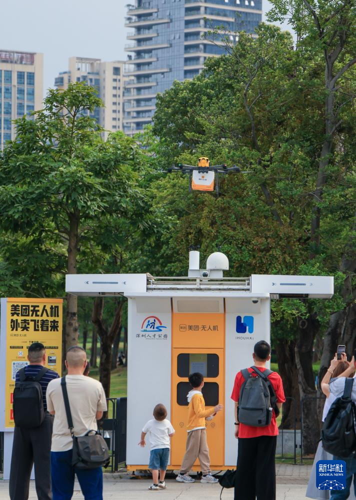 4月1日,游客在深圳人才公园等待外卖无人机派送餐饮。