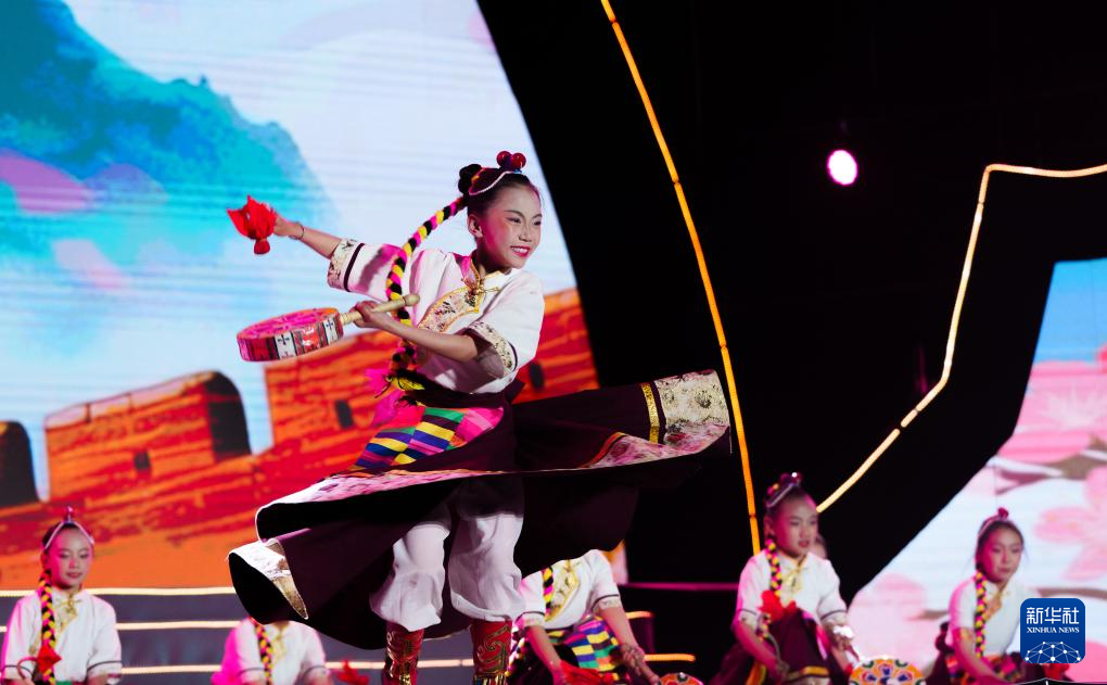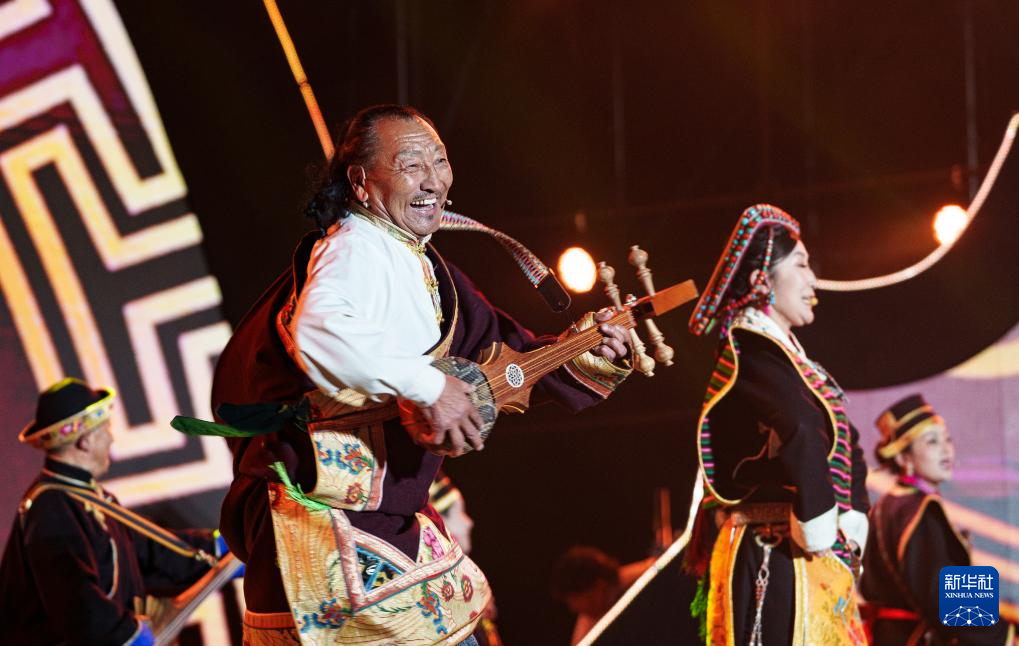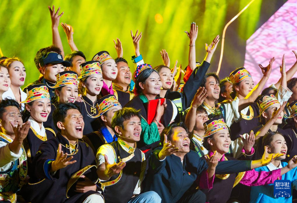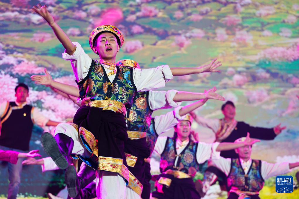 这是4月3日拍摄的林芝第二十三届桃花旅游文化节开幕式文艺演出现场。