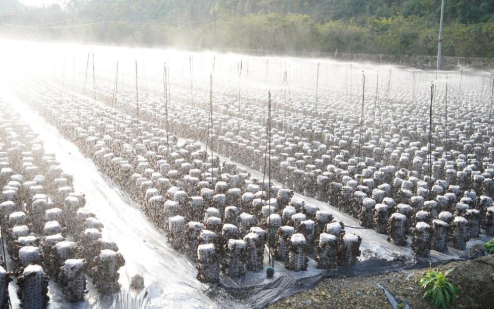 2026年1月28日,龙岸镇高安村的黑木耳种植基地内,智能化自控浇水系统正根据气候温湿度对黑木耳浇水。新华网发 (闭秀玉摄)