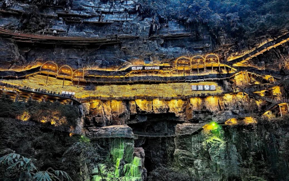 棉花天坑崖壁上的悬崖书店。(资料图)