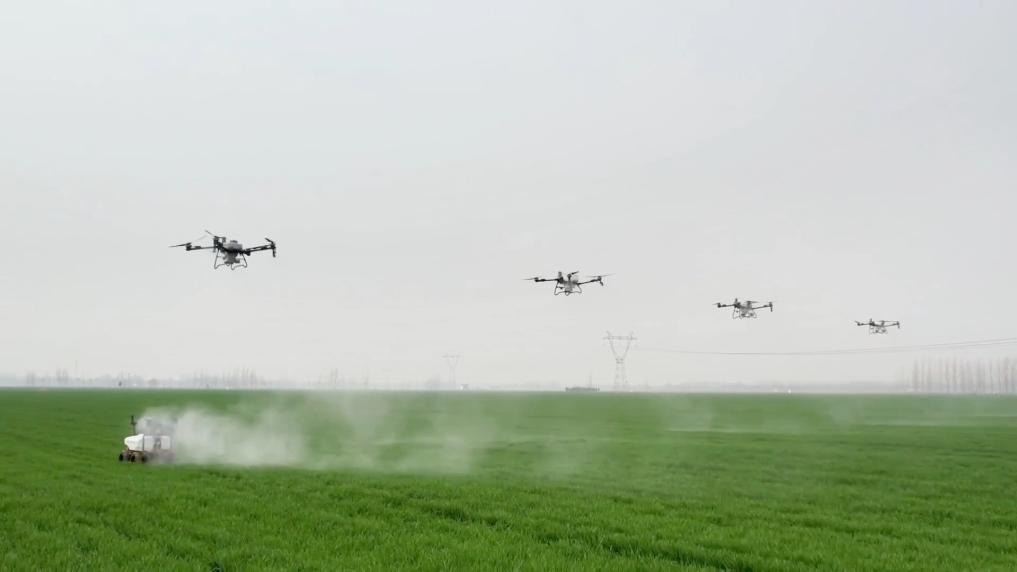 当前正值春耕春管的关键期。在河南省濮阳市清丰县固城镇张庄里村,绿油油的麦田中,不见农民们忙碌的身影,无人机正在帮助农民进行田间管理。