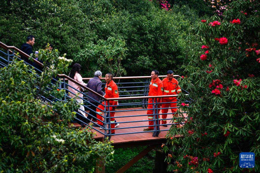 森林防火队员们在贵州百里杜鹃管理区金坡景区巡逻,排查森林火灾隐患(4月2日摄)。