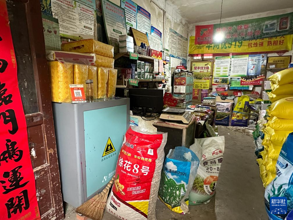 在华东某省一家农资经营门店,店内的农资废弃物专用回收箱柜门紧锁,顶部堆放着待售商品。据反映,设备自摆放以来便长期闲置,柜门紧锁无法打开(4月3日摄)。