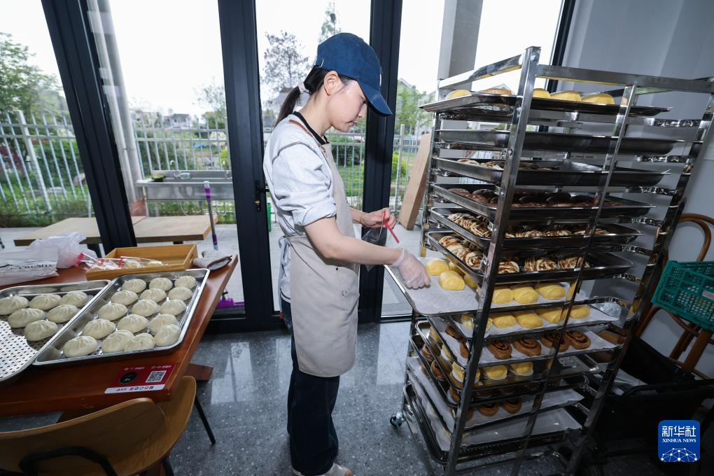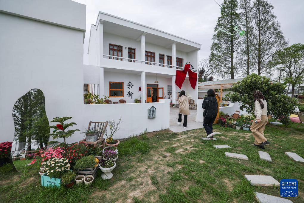 这是4月8日拍摄的嘉兴市南湖区余新镇长秦村欢喜烘焙花园。这里凭借“咖啡+田园”融合业态的创新探索,吸引不少客人前来休闲打卡。