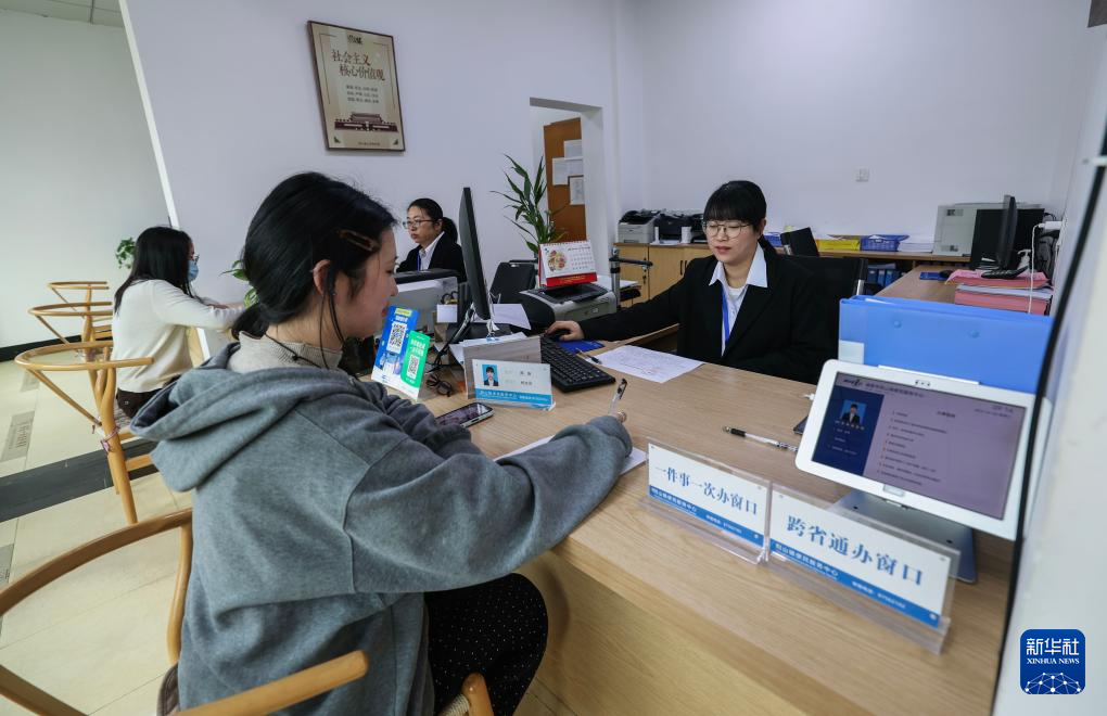 4月8日,在诸暨市同山镇便民服务中心“一站式”服务窗口,居民办理社保业务。同山镇便民服务中心充分发挥枢纽作用,聚焦群众高频办事事项,优化窗口设置、简化办事流程,推行“一窗受理、并联办理、限时办结”模式,增设周末窗口,让群众“少跑路、好办事、办好事”。