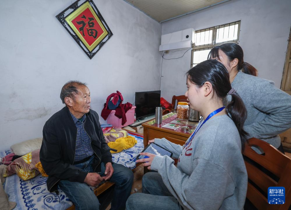 4月8日,诸暨市同山镇唐仁村村级代办员为行动不便的老人上门办理医保业务。