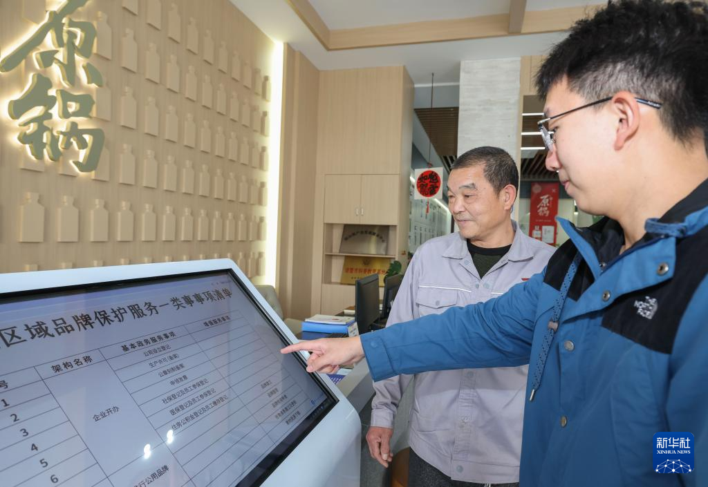 4月8日,诸暨市市场监督管理局同山所工作人员(中)在浙江原锅酒业有限公司包装车间对白酒商品标签进行现场检查、指导。