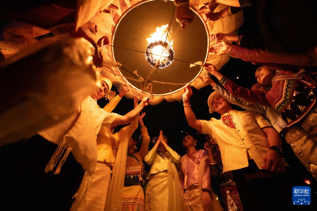 4月13日晚,云南省西双版纳傣族自治州景洪市澜沧江畔,来自五湖四海的游客和当地群众一起,将一盏盏写满祝福的孔明灯放飞,空中灯火如星河倒悬,与江面波光交相辉映。