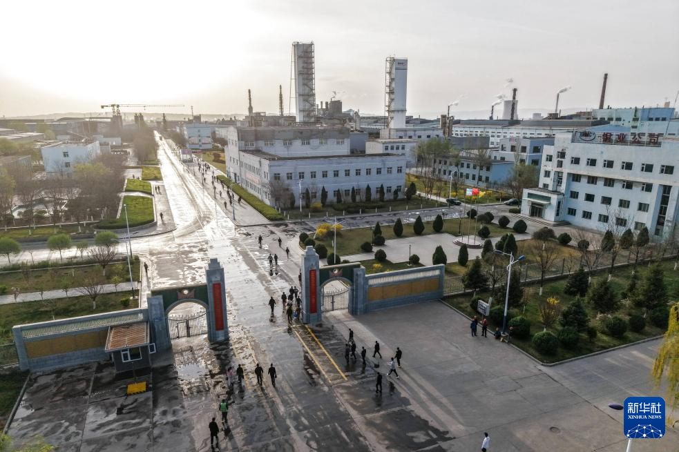 4月13日拍摄的白银有色集团股份有限公司铜业公司大门(无人机照片)。
