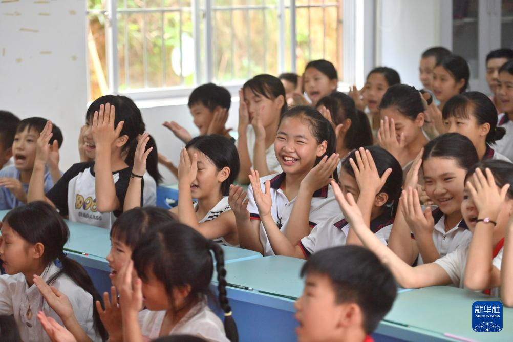 4月16日,广西梧州市长洲区组织一批老师来到倒水镇大桥小学,开展送教下乡活动,帮助乡村小学学生了解非遗和科技知识。