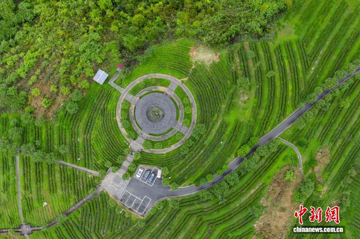 4月21日,航拍重庆市秀山土家族苗族自治县兴隆坳现代农业园区茶叶示范基地,连绵茶山绿意盎然,尽显生机。(无人机照片)中新社记者 何蓬磊 摄