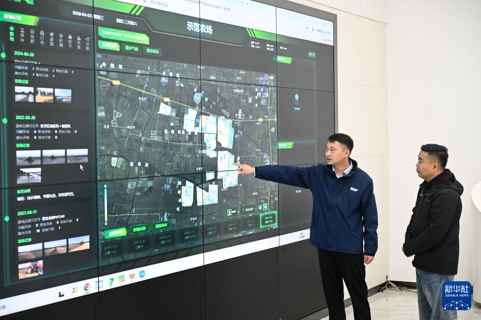 4月22日,在先正达集团中国旗下中化农业东台MAP技术服务中心,农艺师通过智慧农业系统查看、分析示范田小麦生长情况。