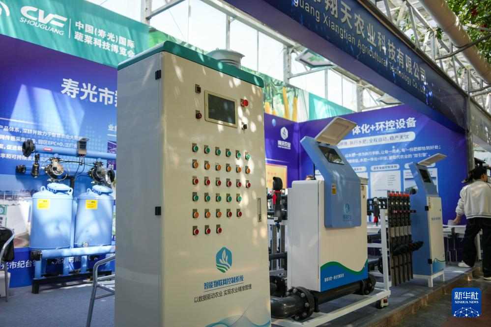 这是在菜博会上展示的全天候田间环境调控设备(4月20日摄)。
