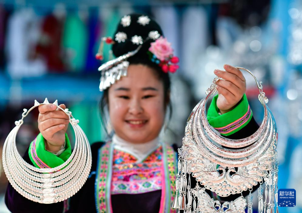 近年来,当地依托丰富的非遗资源,构建“合作社+工坊+农户”产业模式,打造肇兴侗寨、水口镇纪流“银匠村”等银饰产业集群,推动传统技艺与现代设计相融合。