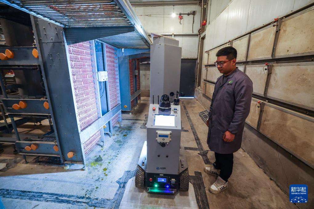 4月23日,在湖州市吴兴区妙西镇石山村湖州绿盛生态农业有限公司车间内,“90”后农创客刘文超在查看智能巡检机器人的运行状态。他本是一名互联网大厂程序员,回到父亲养鸡场后,创立了湖州绿盛生态农业有限公司,主导建成9栋数字化鸡舍,搭建蛋禽养殖数字平台,全面应用自动喂料、集蛋、清粪等设备,养殖效率大幅提高。
