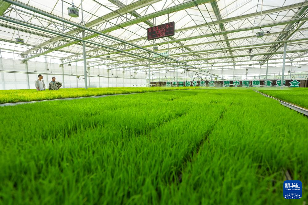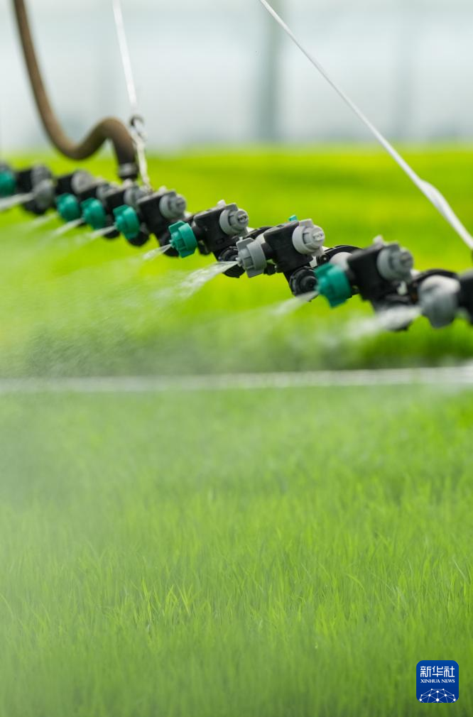 4月23日,在四川省自贡市富顺县代寺镇智慧育秧中心,水肥一体化智能喷灌装置在为秧苗浇水。