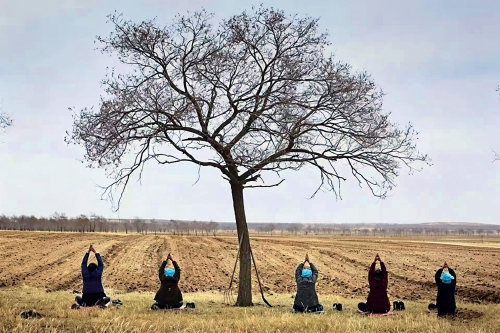 玉狗梁村的第一节瑜伽课正式开始。卢文震从最基础的内容教起:双腿扎成马步,双手在胸前抱成圆,张嘴发出一连串“呜呜”声。这套既能锻炼自身稳定性,又可以增强肺活量的动作,在村民眼里却是怪异的。大家面面相觑,谁也不好意思在大庭广众下做出尝试。