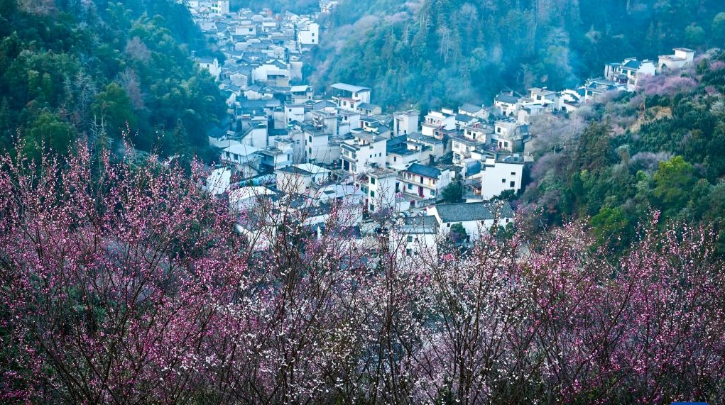 安徽黄山:卖花渔村梅花开