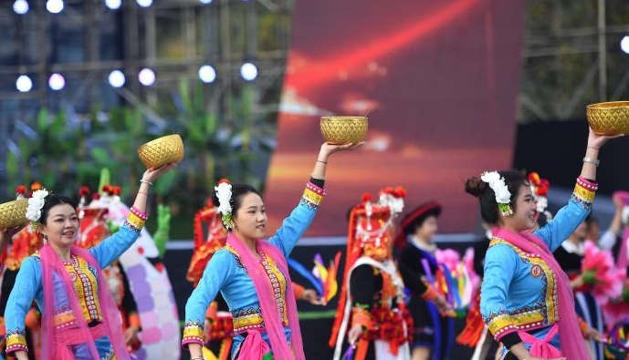 云南金平欢庆建县40周年 各族民众盛装巡游